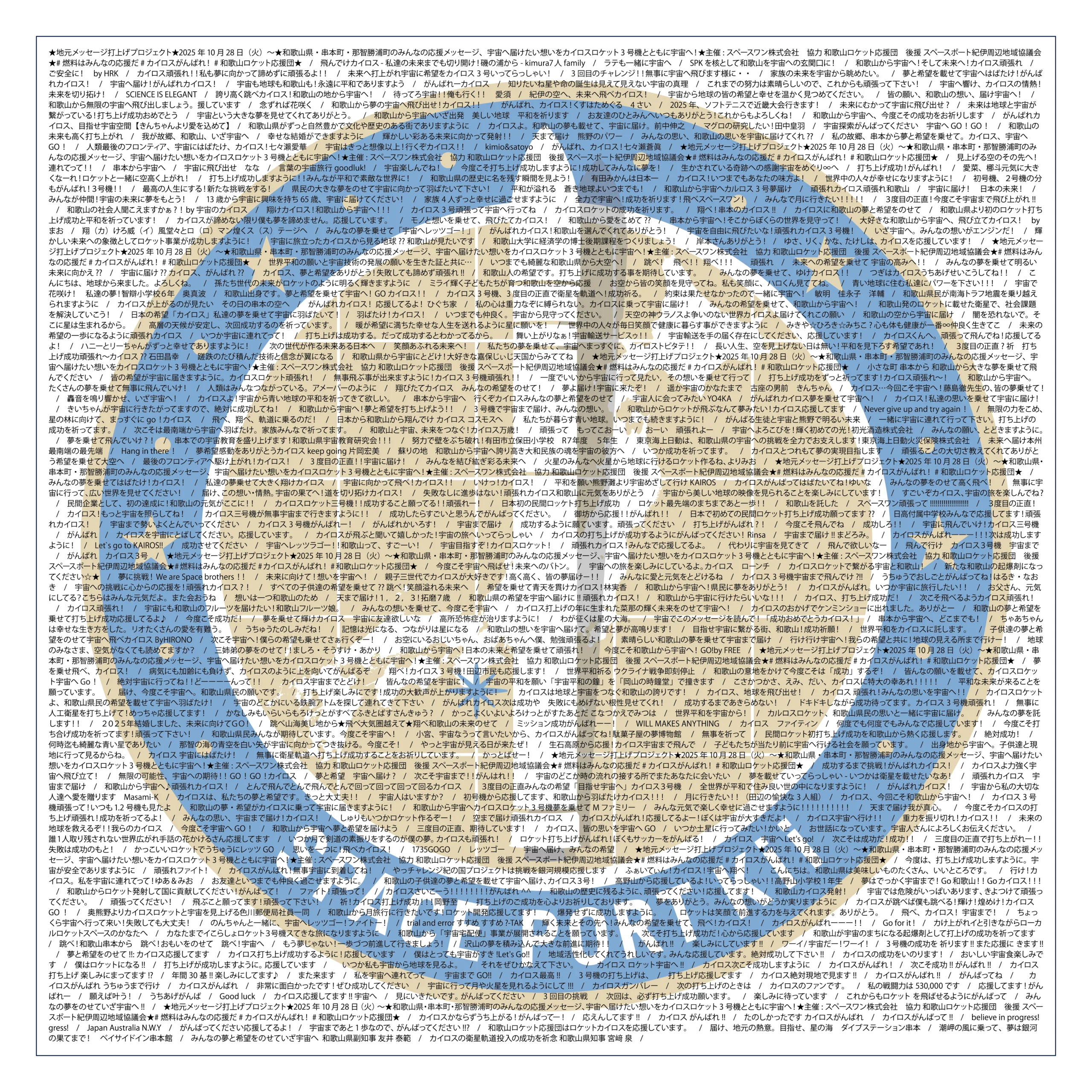 地元メッセージ打上げプロジェクトで募集した皆さんのメッセージディカールがスペースポート紀伊に引渡されました。2月25日のカイロスロケット3号機に搭載されます。