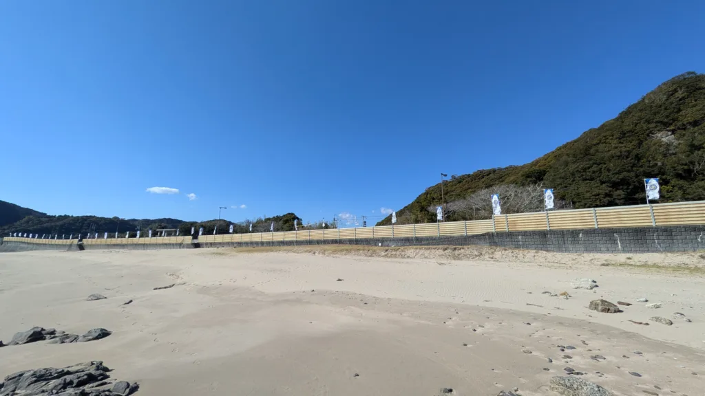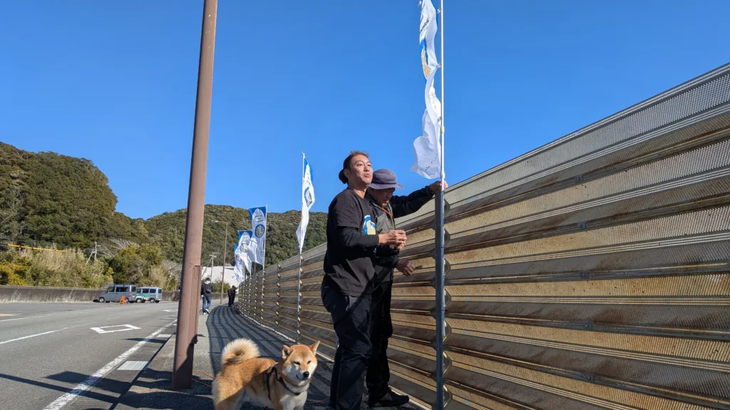 会場の清掃活動を行い、来場される皆さまを気持ちよくお迎えする準備を整えた後、仕上げにこののぼり旗を掲げました。青空の下、海岸沿いにずらりと並んで風になびくのぼり旗を見ると、「いよいよロケットが宇宙へ飛び立つんだ」という実感が湧き、胸が熱くなります。