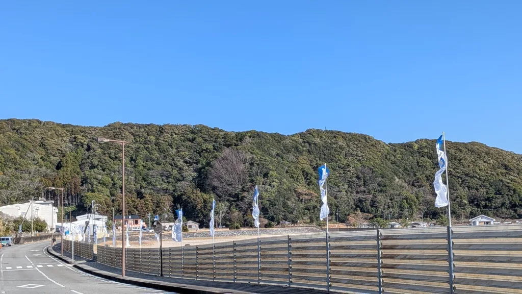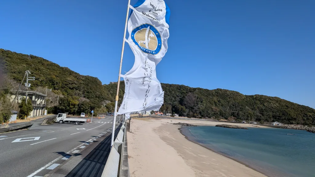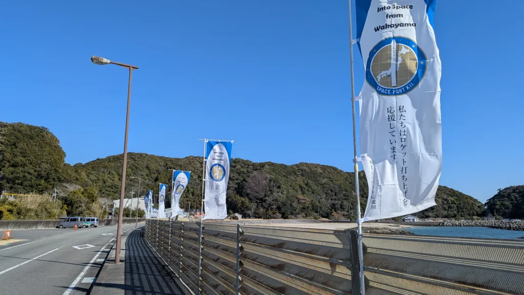 本日、浦神・田原パブリックビューイング会場にて、「和歌山ロケット応援団」の応援のぼりを設置いたしました!